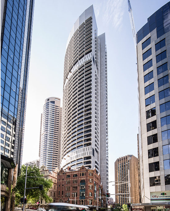 Seidler was briefed to create a single 44-storey tower with an unusually large floor plate and responded by designing not only an architectural masterpiece with two convex ‘camera lenses’ focused on breathtaking views of Sydney Harbour, but a flexible working destination. The flexible, column-free workspaces are amongst Sydney’s largest and the building houses up to 5,000 people.