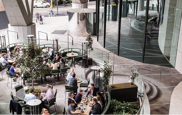 The European-style al-fresco piazza centered on a fountain feature courtyard provides customers and Sydneysiders the option to dine outdoors from 7am until late, five days a week, delivering a sophisticated dynamic to Grosvenor Place.